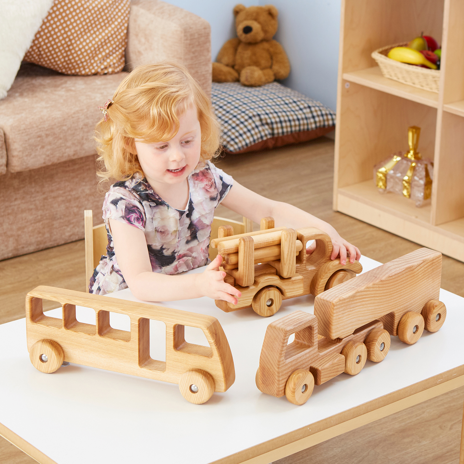 A super sized, beautifully crafted vehicle set for exciting small world play activities.