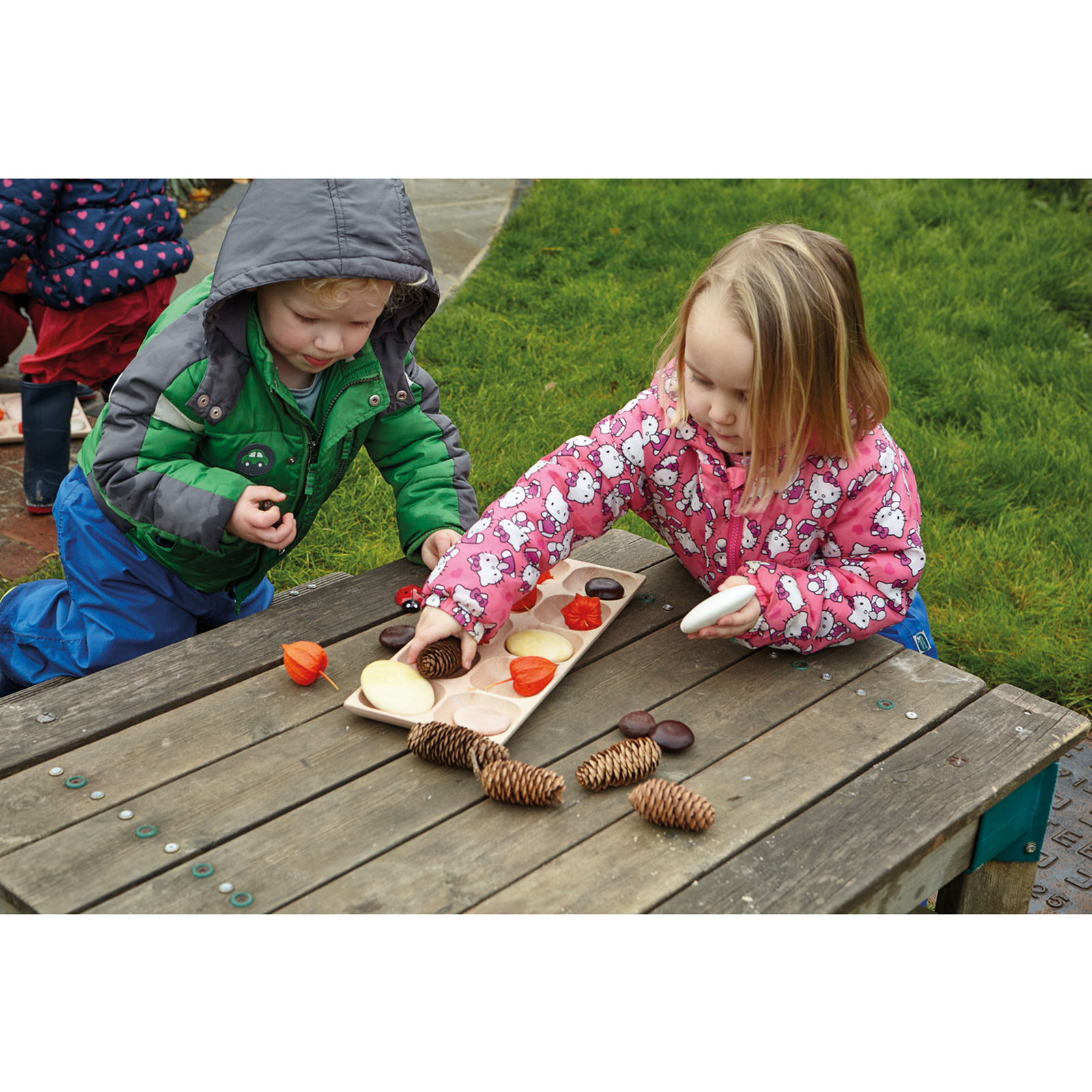 A beautiful wooden tactile tray, great for loose parts play.