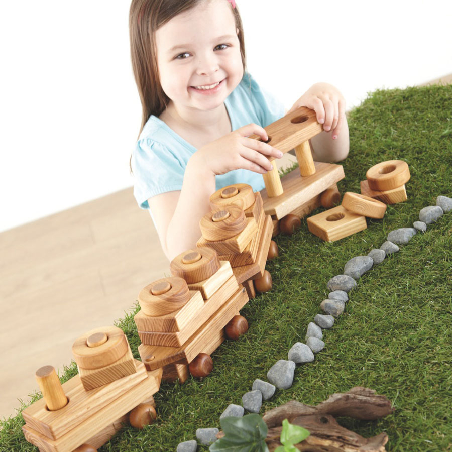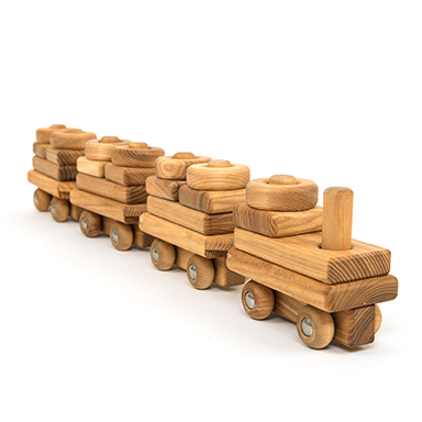 A beautifully crafted traditional wooden train that is also a stacking construction toy.