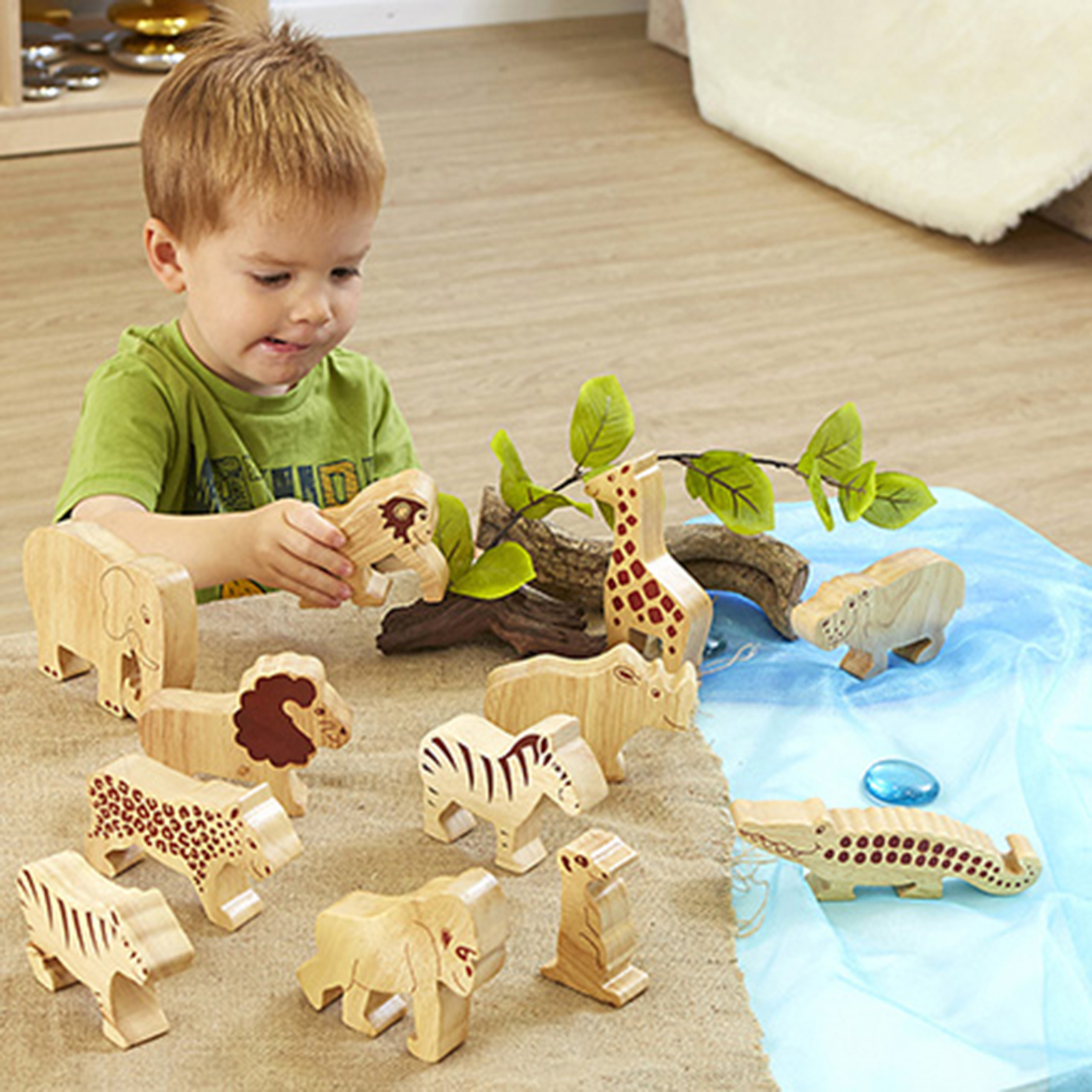 A set of bespoke natural animals with printed detailing.